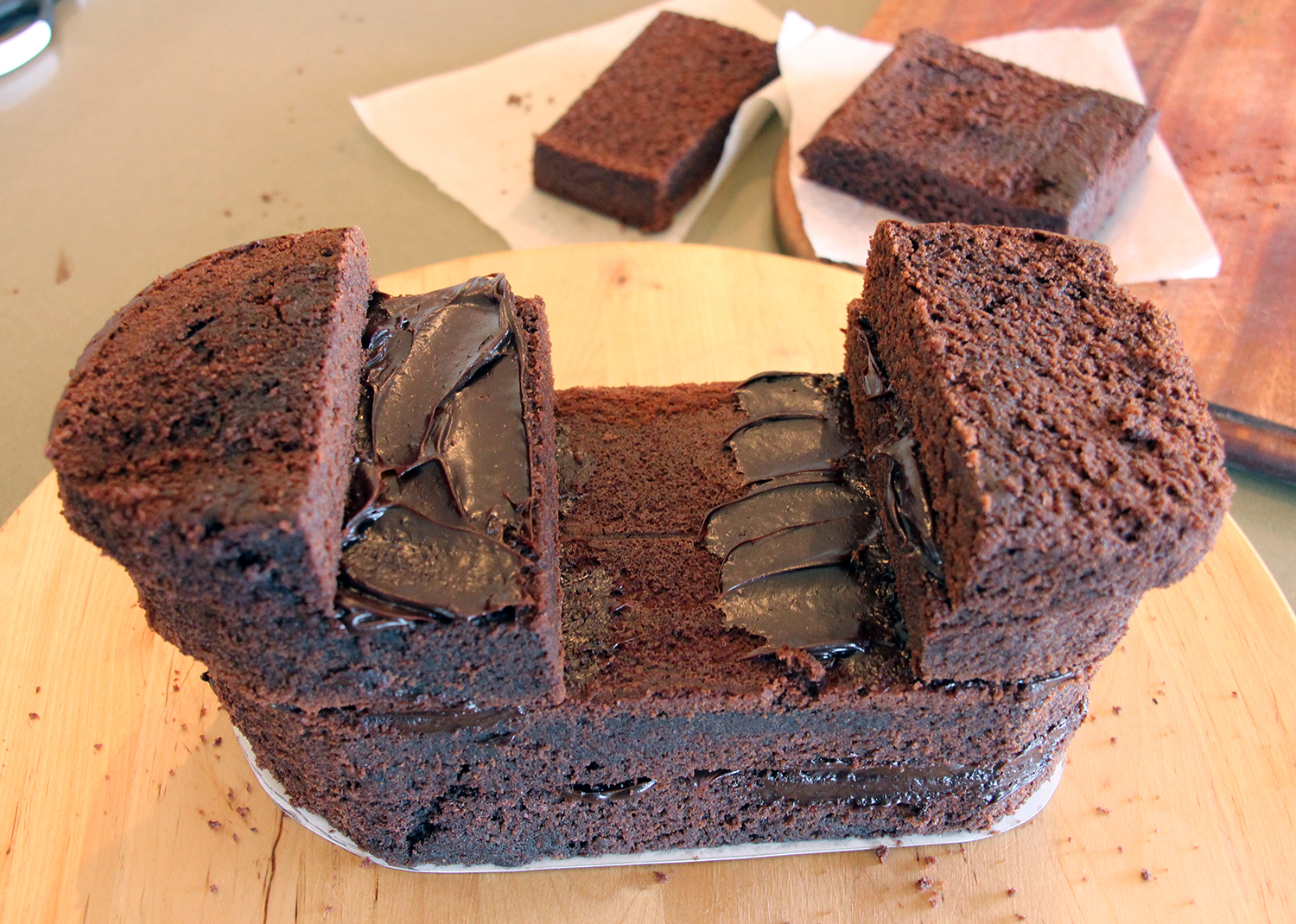 although I am asking you to make a lot of ganache, you will need a lot to give the ship its bulging shape and any extra can be frozen till your next cake project.